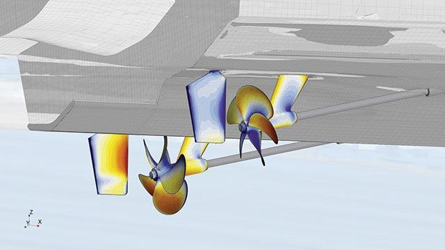 Using computer-aided engineering (CAE) and Simcenter simulation tools, these performance improvements are made before any components are manufactured. This allows for crucial decisions to be made much earlier in the design process, leading to increased efficiency, reduced costs, and improved products. "With CFD simulation, we can predict the wake field coming into the propeller and how the flow can be affected by the bracket in front and the rudder behind. This means we can evaluate the system rather than individual parts," says Phare. Javdani adds, "Simcenter STAR-CCM+ is vital to our development processes. Simulation makes it possible to explore many more iterations in less time, so we can come up with the optimal design."